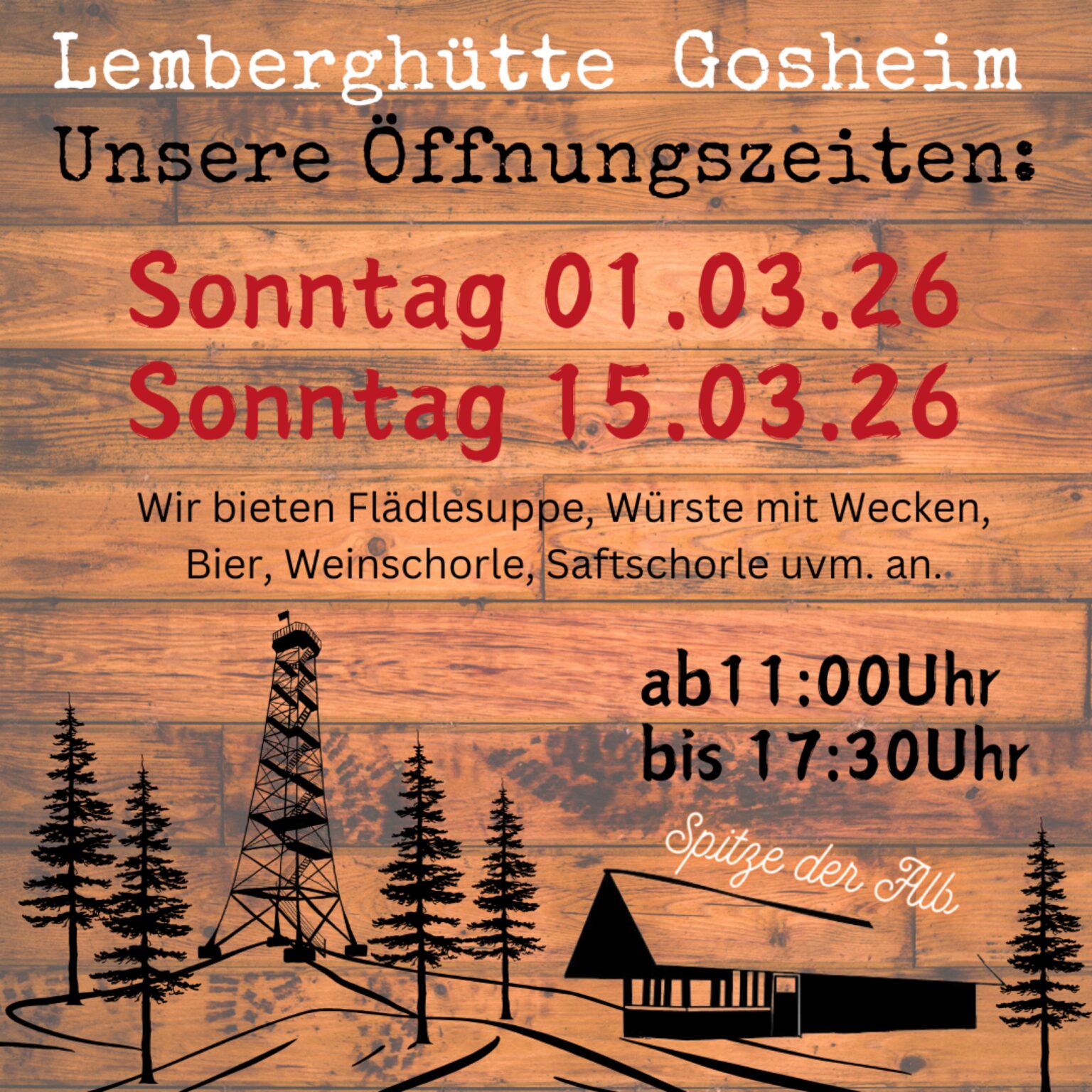 Published Februar 9, 2026 at 2560 × 2560 in ,Huette geoeffnet‘